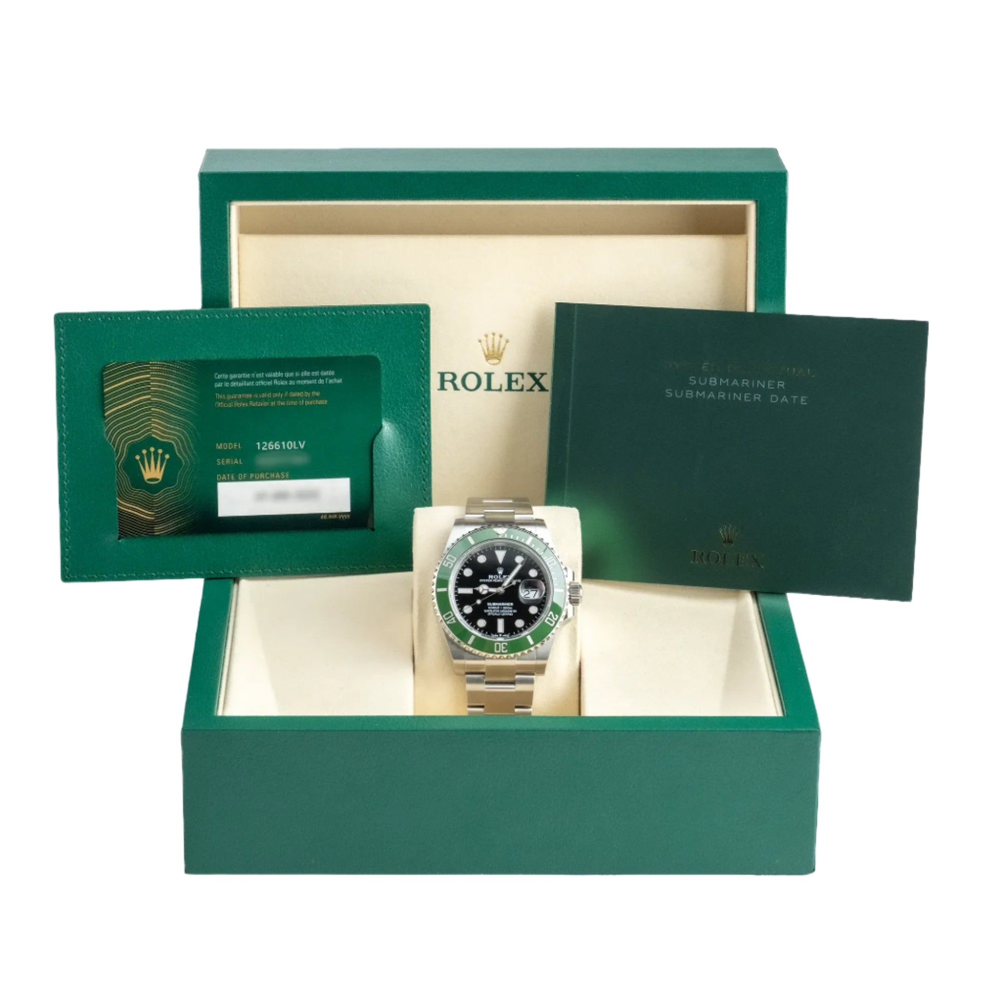 (Left) Rolex “Starbucks” Submariner Date 126610LV (Right) Rolex “Hulk” Submariner Date 116610LV