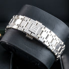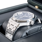The Audemars Piguet Royal Oak blue dial diamond bezel 15551ST.ZZ.1356ST.05 is a stunning example of the brand’s signature blend of luxury and craftsmanship. Crafted in a 37mm stainless steel case, this watch features a blue dial with the classic “Grande Tapisserie” pattern, radiating timeless elegance. The bezel is adorned with...