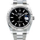 The Rolex Datejust 41 126334 is a perfect mix of style and reliability. Made from strong Oystersteel, it has a 41mm case with a sleek black dial and bright hour markers for easy reading. The fluted bezel adds a touch of elegance, while the scratch-resistant sapphire crystal protects the display....